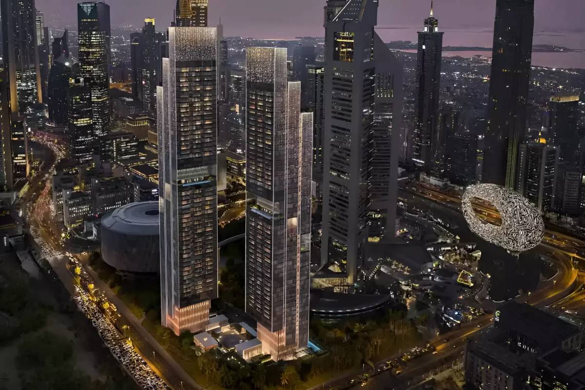 The twin-tower development showcases an exclusive collection of 1 to 4-bedroom Apartments and Duplexes that benefit from five-star Jumeirah hospitality services woven into daily life (e.g., 24/7 concierge, valet, and housekeeping). Designed by SCDA Architects, the towers boast a stunning cantilevered silhouette that maximizes panoramic views of the Museum of the Future, DIFC, and the Downtown Skyline. The beginning price is at 3.5 million, with a flexible 20/40/40 payment plan and expected handover in September 2030.